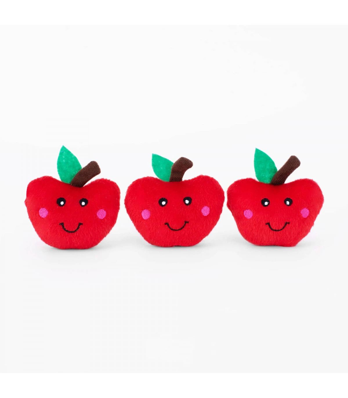 Composé à l’intérieur de trois petites peluche en forme de Pomme qui couine quand on les croques